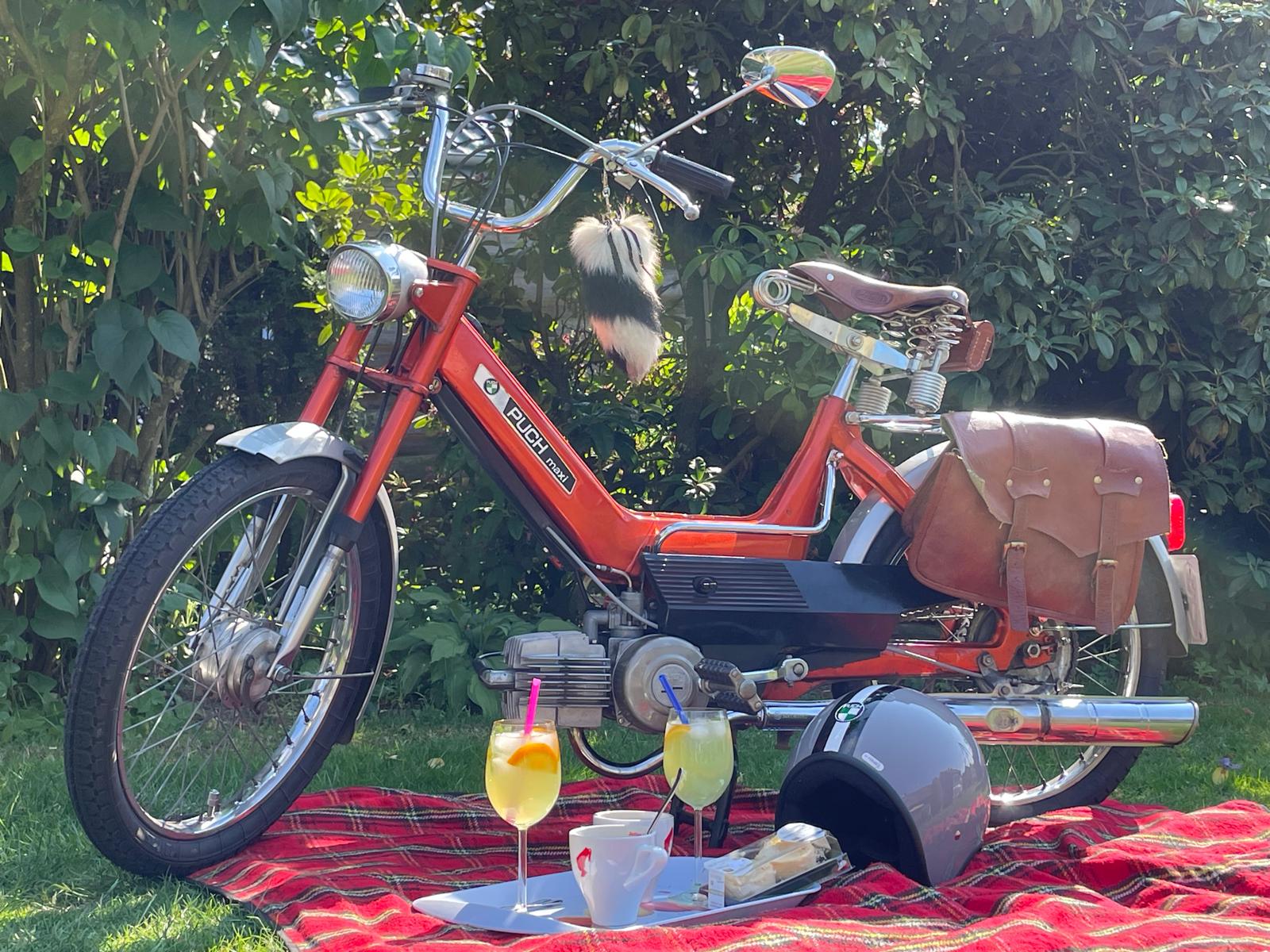 Es begab sich im Jahre 2020, als unser Clubmitglied Manuel sich eine Puch Maxi GS gekauft hat. Hatte wohl auch was mit "Halt mal mein Bier" zu tun.
